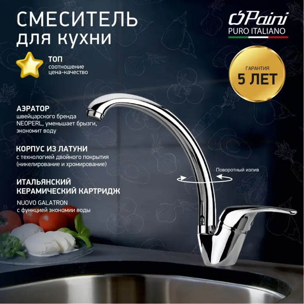 - Итальянский дизайн PAINI и гарантия качества 5 лет.