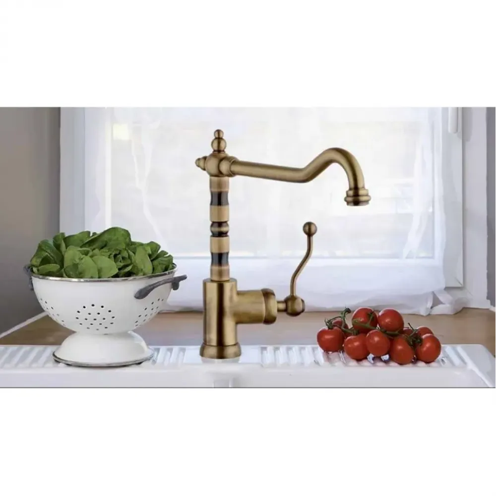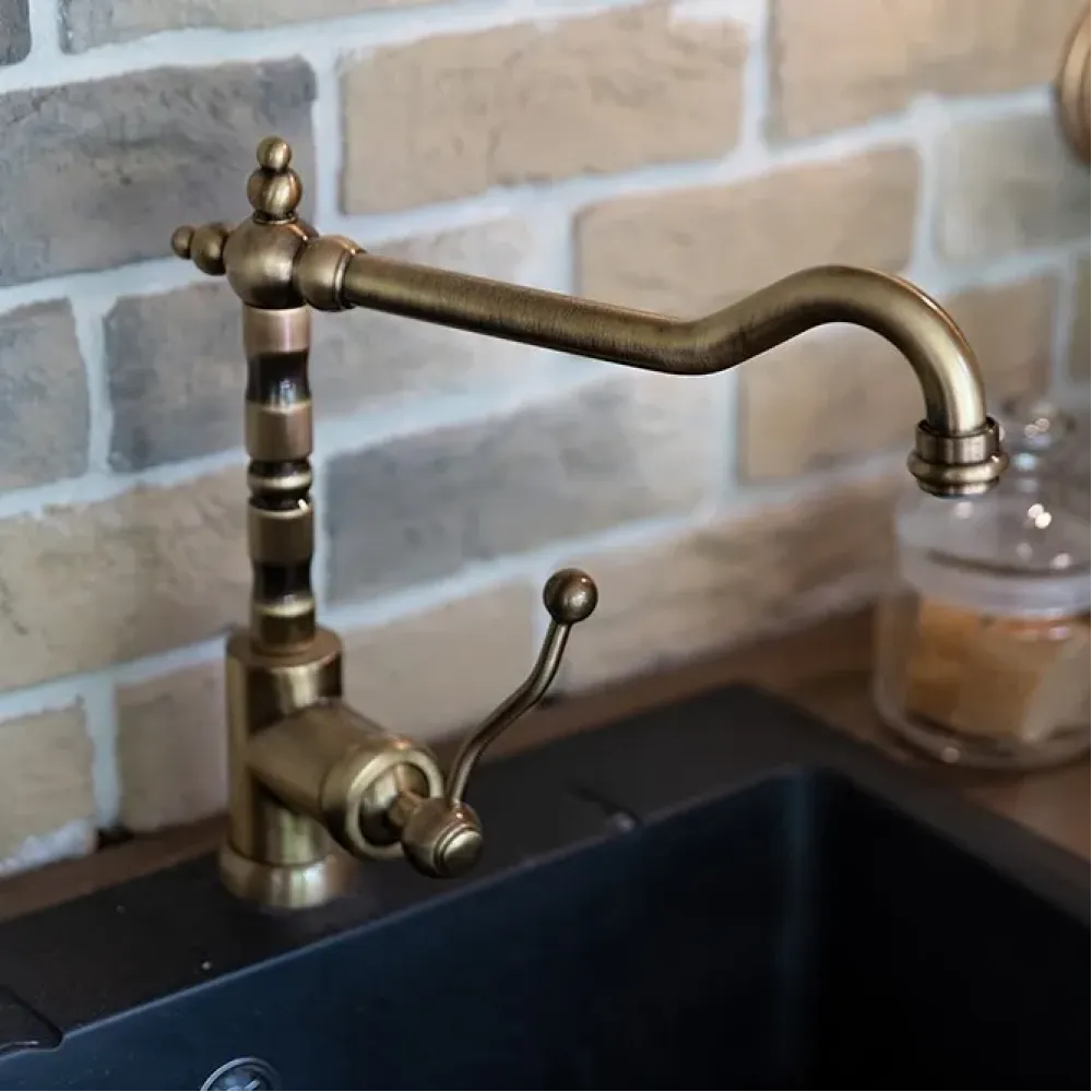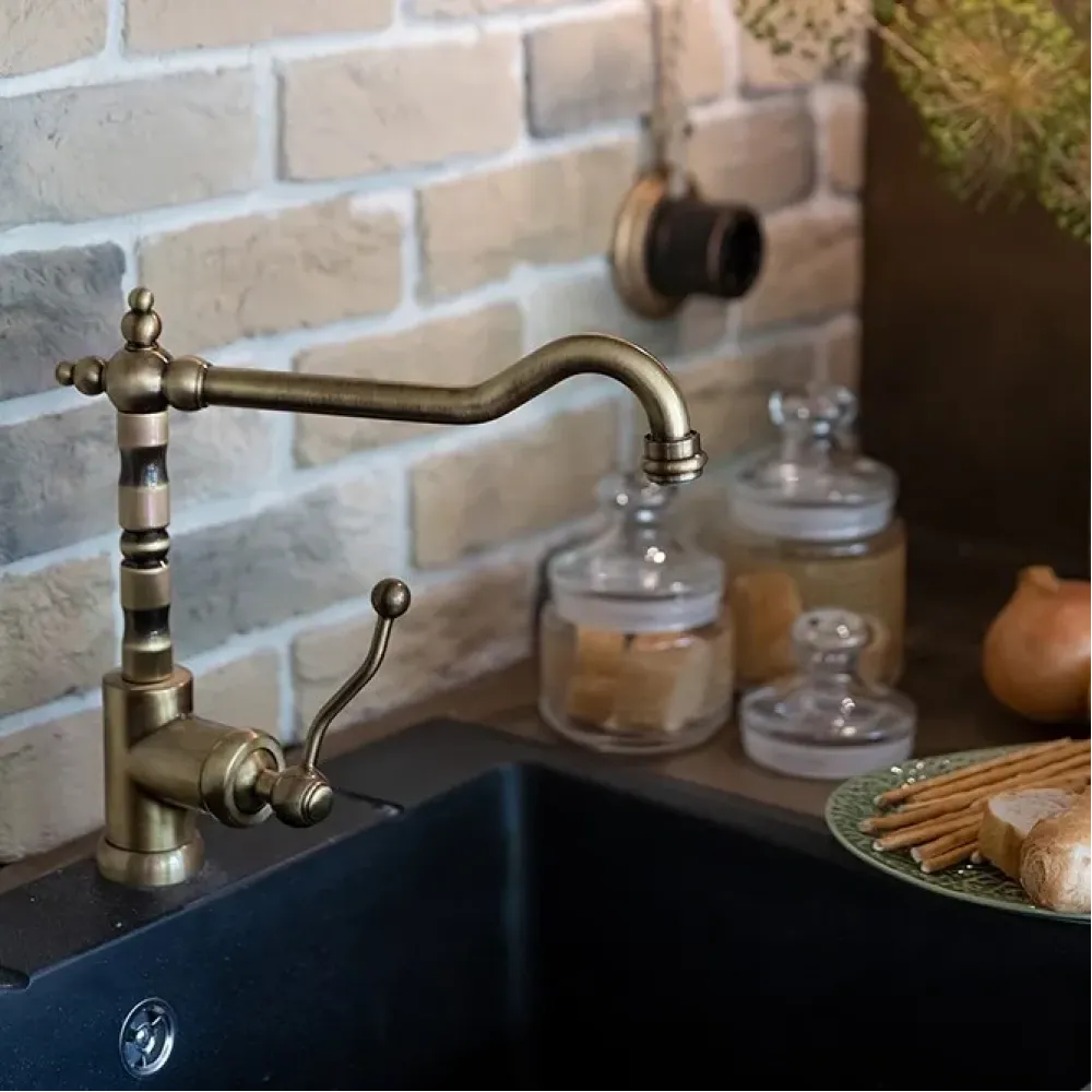 Однорычажный высокий смеситель в винтажном стиле украсит кухню, его поворотный длинный излив позволят менять направление потока воды. Изысканная форма позволит сделать смеситель самостоятельным арт-объектом на кухне. Антикварные изгибы DUOMO будут органично смотреться в стилях классика, винтаж или по-новому раскроют интерьер в стиле фьюжн.