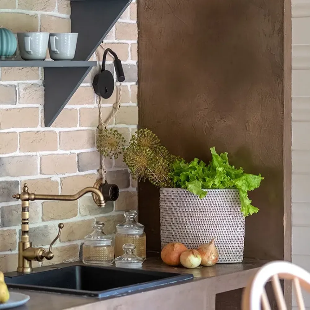 Винтаж в интерьере — это стиль близкий к классике, но предусматривающий решения в виде современных отделочных материалов и некоторых конструкций. Бетон, стекло, сталь, характеризующие современность, можно разбавить теплыми оттенками дополнительных винтажных аксессуаров. Например, мебель из светлого дерева или смеситель в цвете «старая бронза».