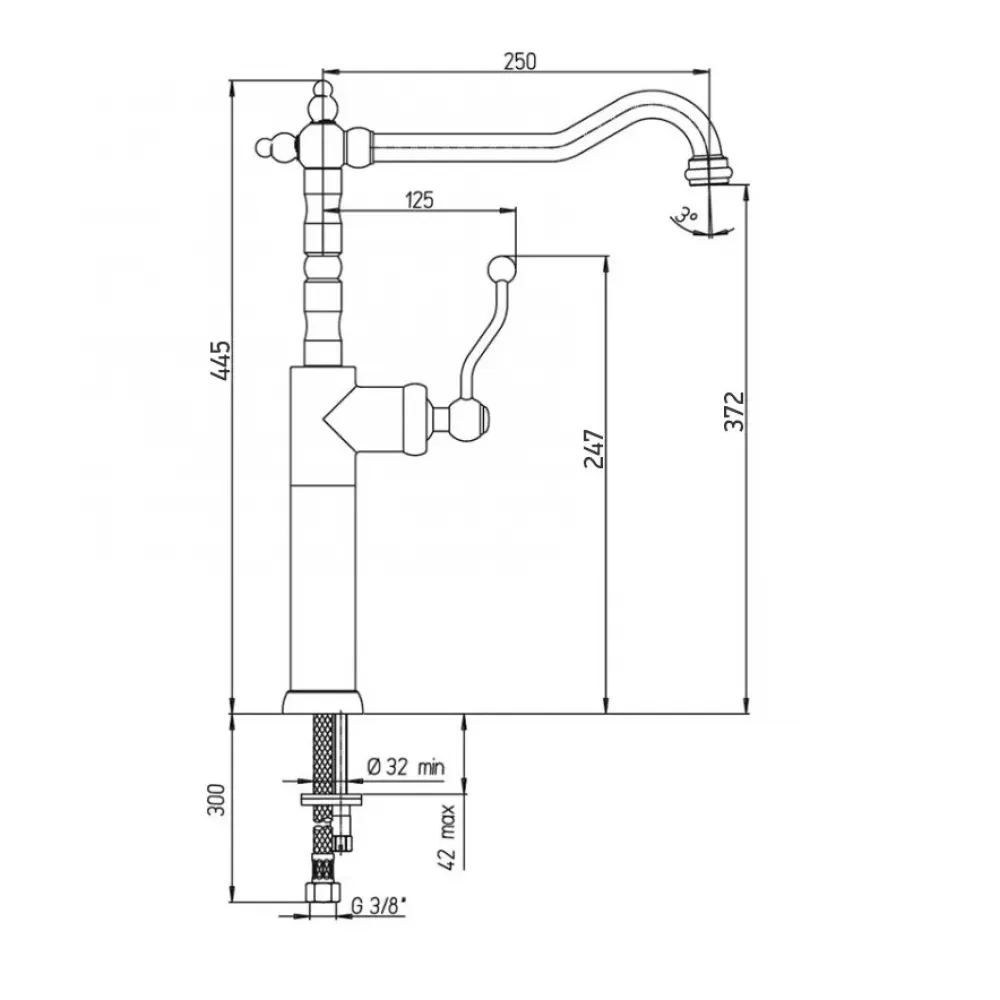 Однорычажный высокий смеситель в винтажном стиле украсит кухню, его поворотный длинный излив позволят менять направление потока воды, а увеличенная высота - использовать глубокую посуду. Изысканная форма позволит сделать смеситель самостоятельным арт-объектом на кухне. Антикварные изгибы DUOMO будут органично смотреться в стилях классика, винтаж или по-новому раскроют интерьер в стиле фьюжн.