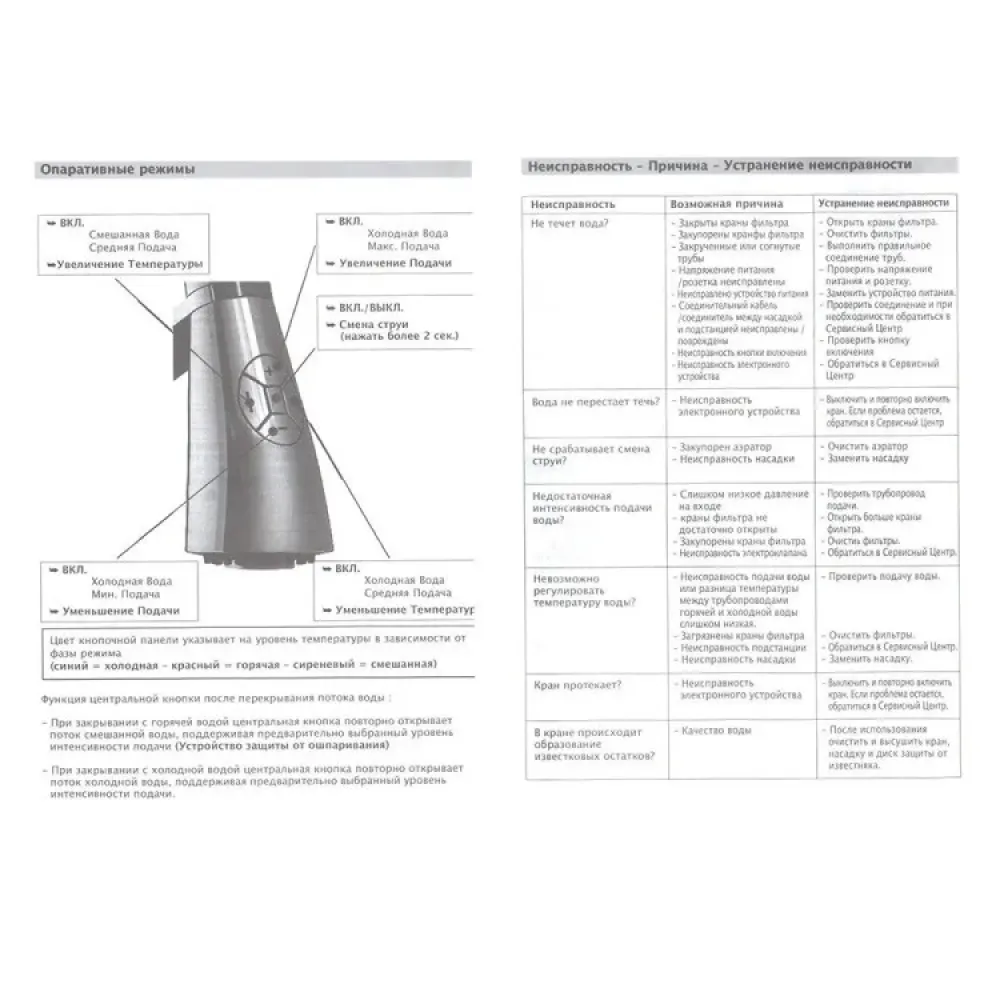 - Моментальное переключение температуры воды и режимов лейки с помощью электроники.