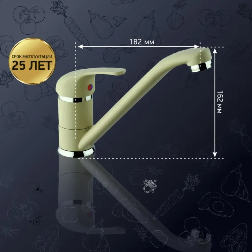 Тип изделиясмеситель для кухни Тип управления клавишейоднорычажный Цветбежевый матовый