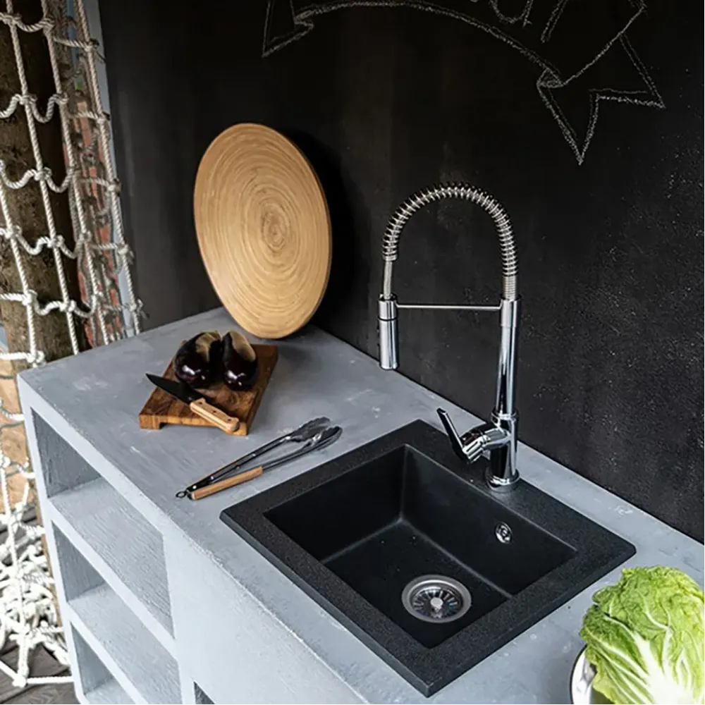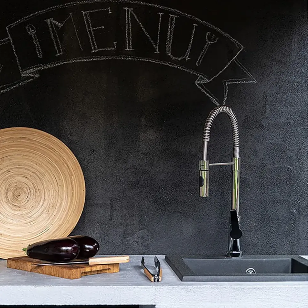 Если на кухне много готовят, то включать воду приходится быстро и часто и, почти наверняка, перепачканными руками. А значит, нужен однорычажный смеситель Le Mans с удобной широкой рукояткой и с выдвижным изливом. Для кухни в стиле минимализм с использованием натурального камня такой смеситель станет той самой необходимой деталью, завершающей интерьер.