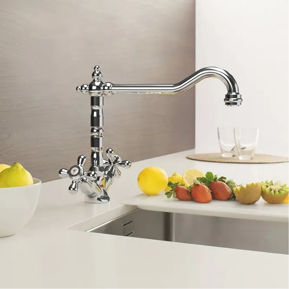Семейная фабрика PAINI с более чем 60-летней историей создала для вас двухвентильный смеситель для кухни в винтажном стиле. Его необычная форма украсит кухню, поворотный длинный излив позволяет менять направление потока воды. Изысканная форма вносит в интерьер теплоту и дух старины и традиций. Изгибы MONACO будут органично смотреться в стилях классика, винтаж или по-новому раскроют интерьер в стиле фьюжн.