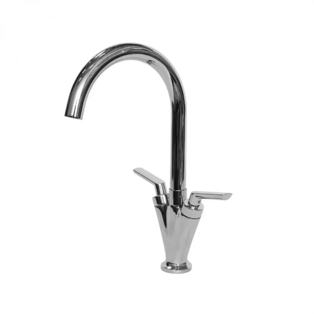 Двухрычажный смеситель для кухни NEPTUNE - популярная бюджетная модель сантехники для кухни. Поворотный излив позволяет менять направление струи, а изящные ручки, расположенные по бокам, позволяют включить воду необходимой температуры.