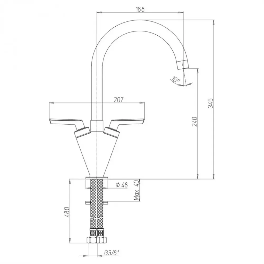 Дизайн смесителя подойдет для кухонь в стилях классика, модерн, минимализм.