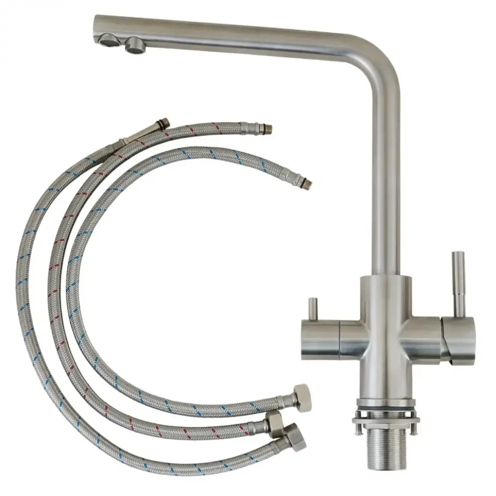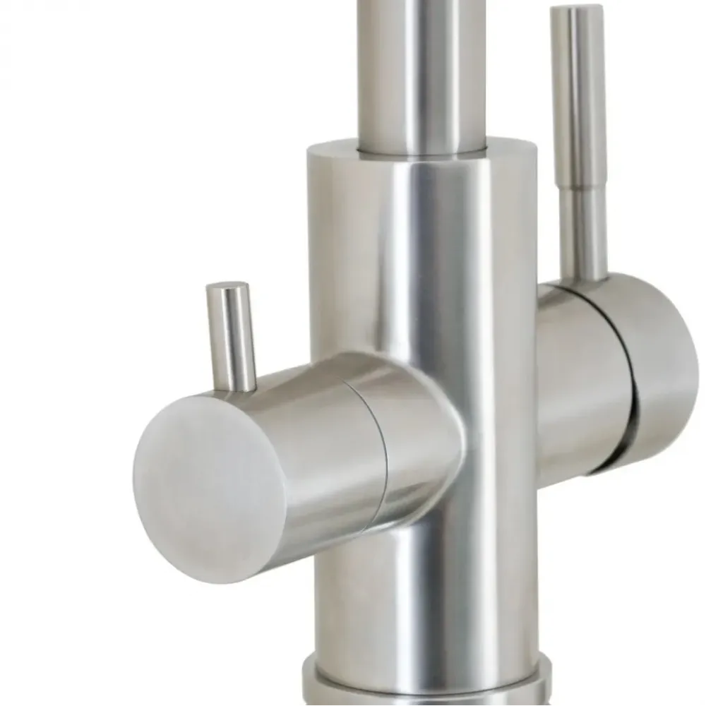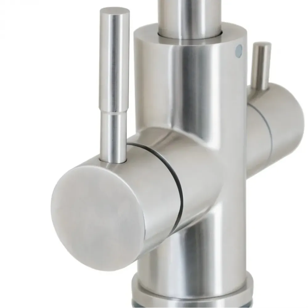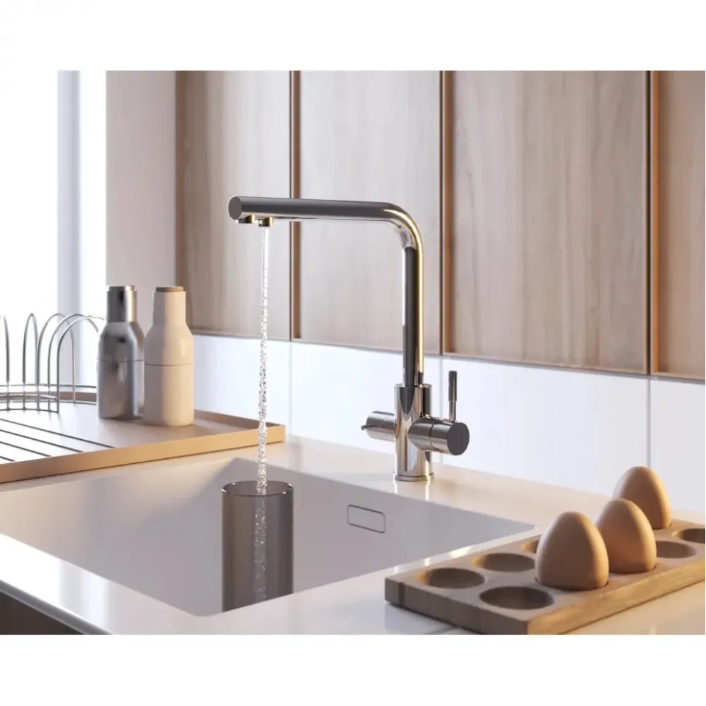 - Помимо стандартного рычага для управления температурой воды и открытия / закрытия, имеется рычаг для подачи фильтрованной воды.