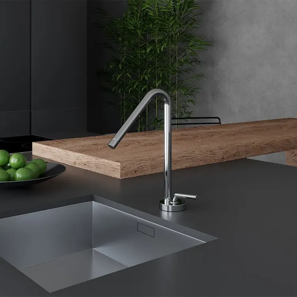Коллекция PIXEL с ее интригующими изгибами и скульптурными элементами воплощает в себе абсолютную выверенность форм, достигнутую благодаря многолетнему опыту семейной фабрики PAINI и непреклонному стремлению к новшествам. Привлекая внимание сияющими гранями и выразительными формами, однорычажный смеситель для кухни покоряет красотой своих конструктивных решений. Поворотный излив и высокий корпус идеально подходят для кухни, позволяя наполнить глубокую посуду. Эргономичная ручка и цилиндрический корпус, изогнутый под острым углом, превносят в интерьер строгие линии. Оптимальный набор функций и эстетическое совершенство этой коллекции выигрышно смотрятся в интерьерах в стилях модерн, фьюжн и минимализм.