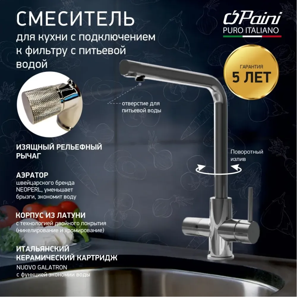 - Итальянский дизайн PAINI и гарантия качества 5 лет.