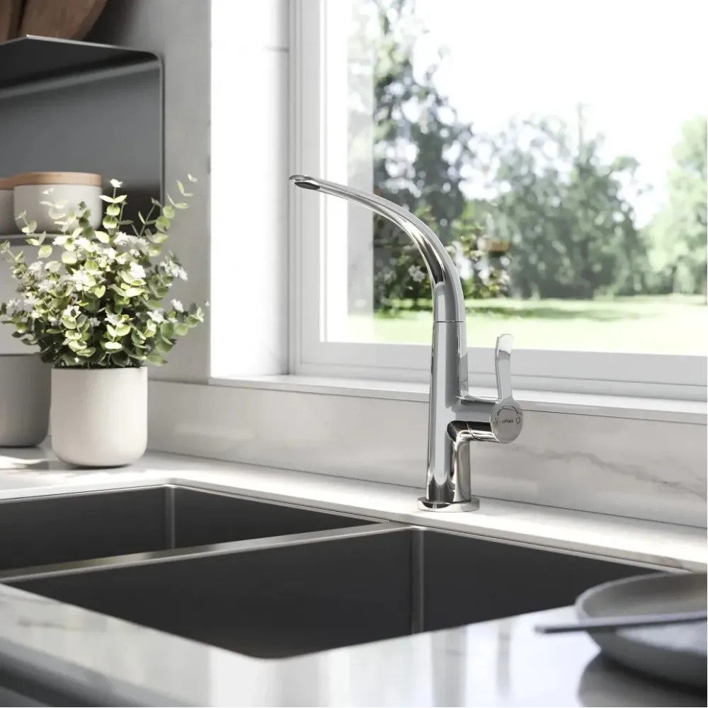 - Изящный супер утонченный излив, удобный изогнутый рычаг управления.