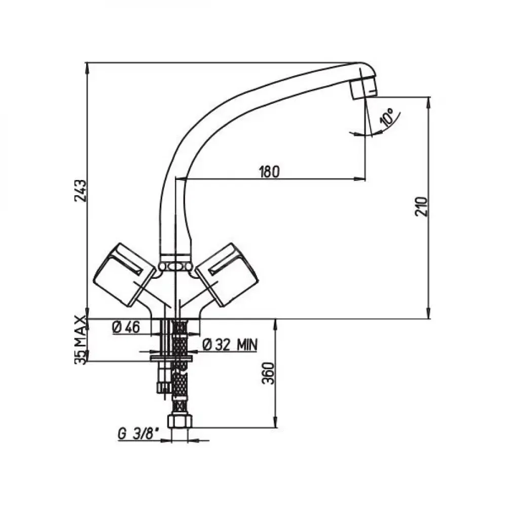 - Корпус выполнен из латуни с технологией двойного покрытия (никелирование и хромирование), устойчив к ржавчине и известковому налету.