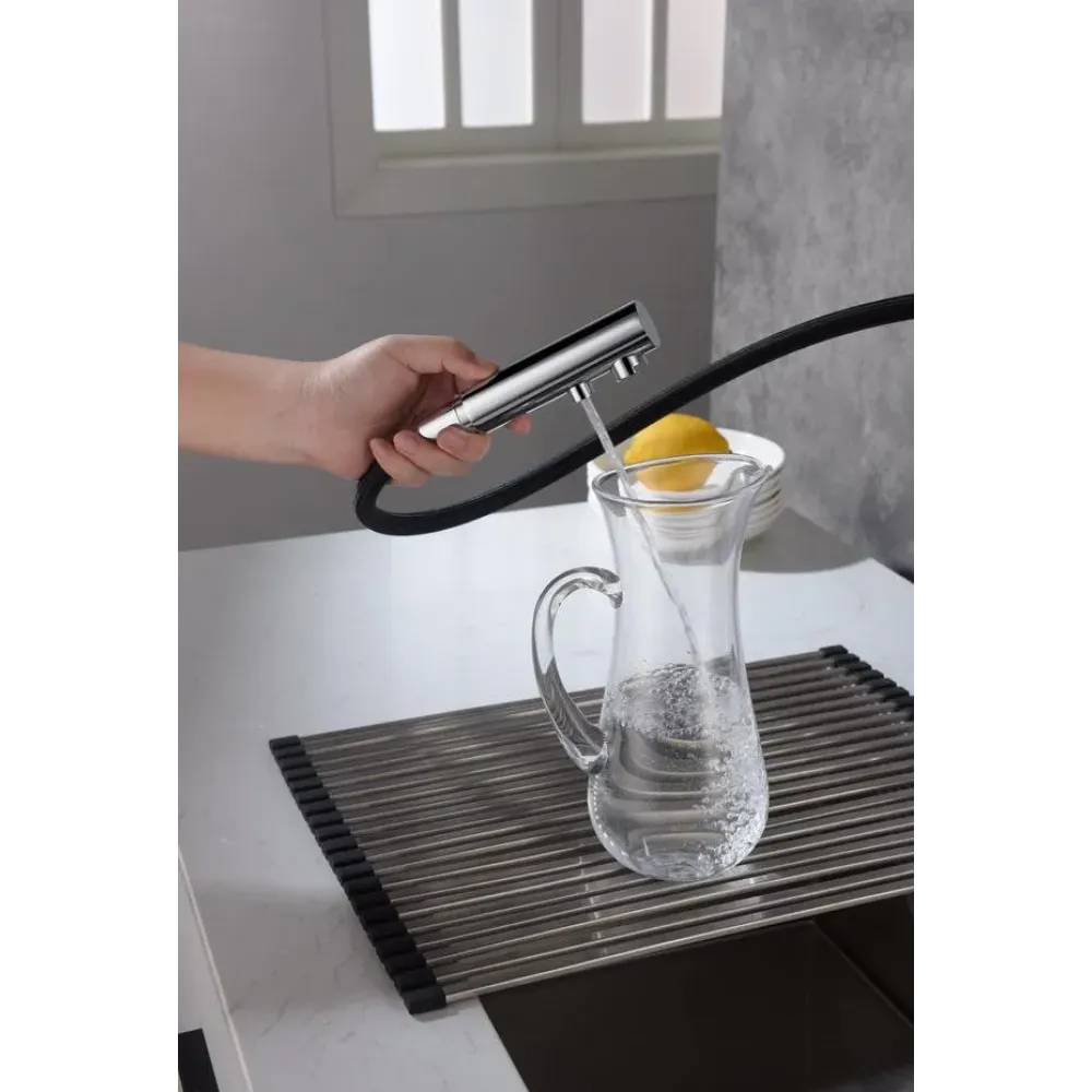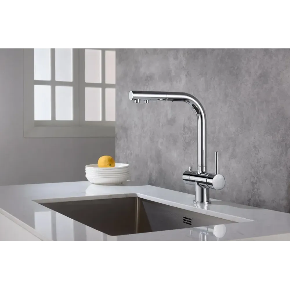 | МатериалЛатунь класса А | Тип смесителяДля кухни, С подключением фильтра для питьевой воды, С вытяжной лейкой | УправлениеОднорычажное |