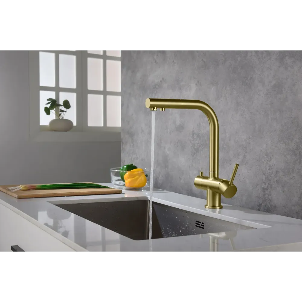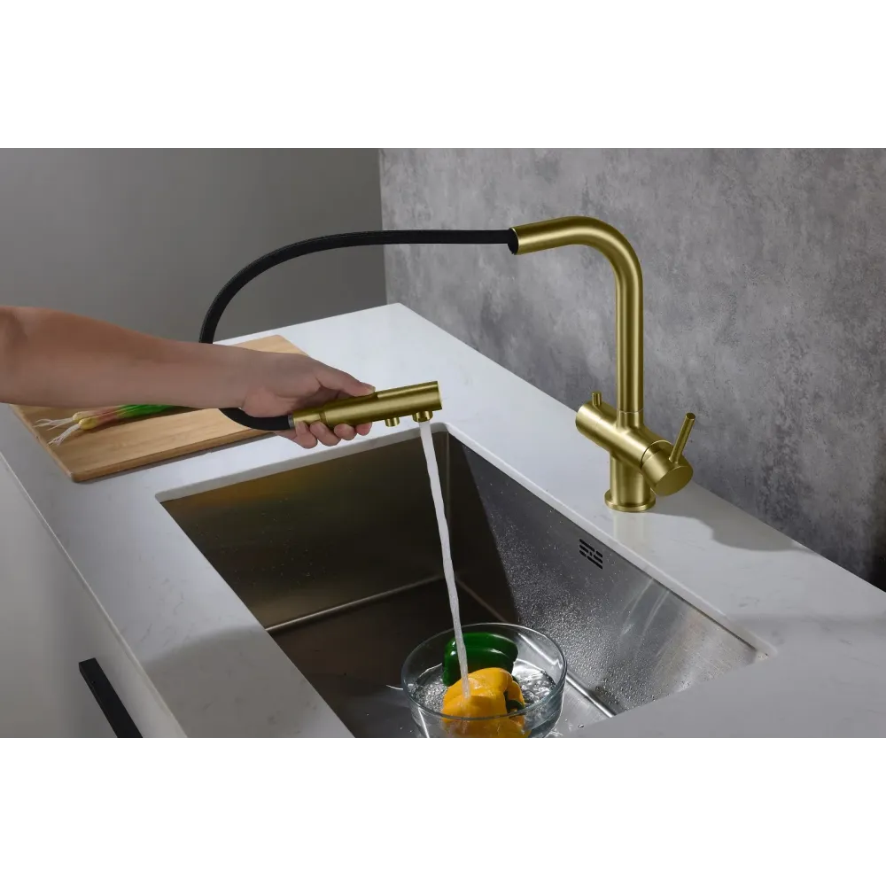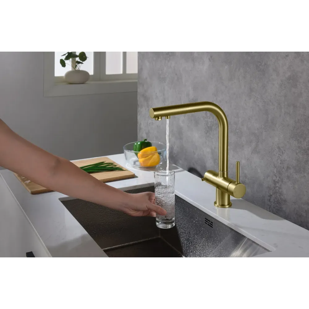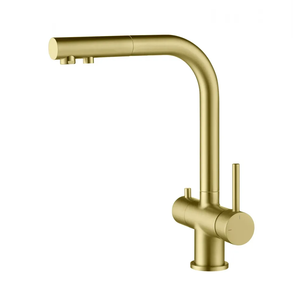| МатериалЛатунь класса А | ПоверхностьМатовая | Тип смесителяДля кухни, С подключением фильтра для питьевой воды, С вытяжной лейкой |