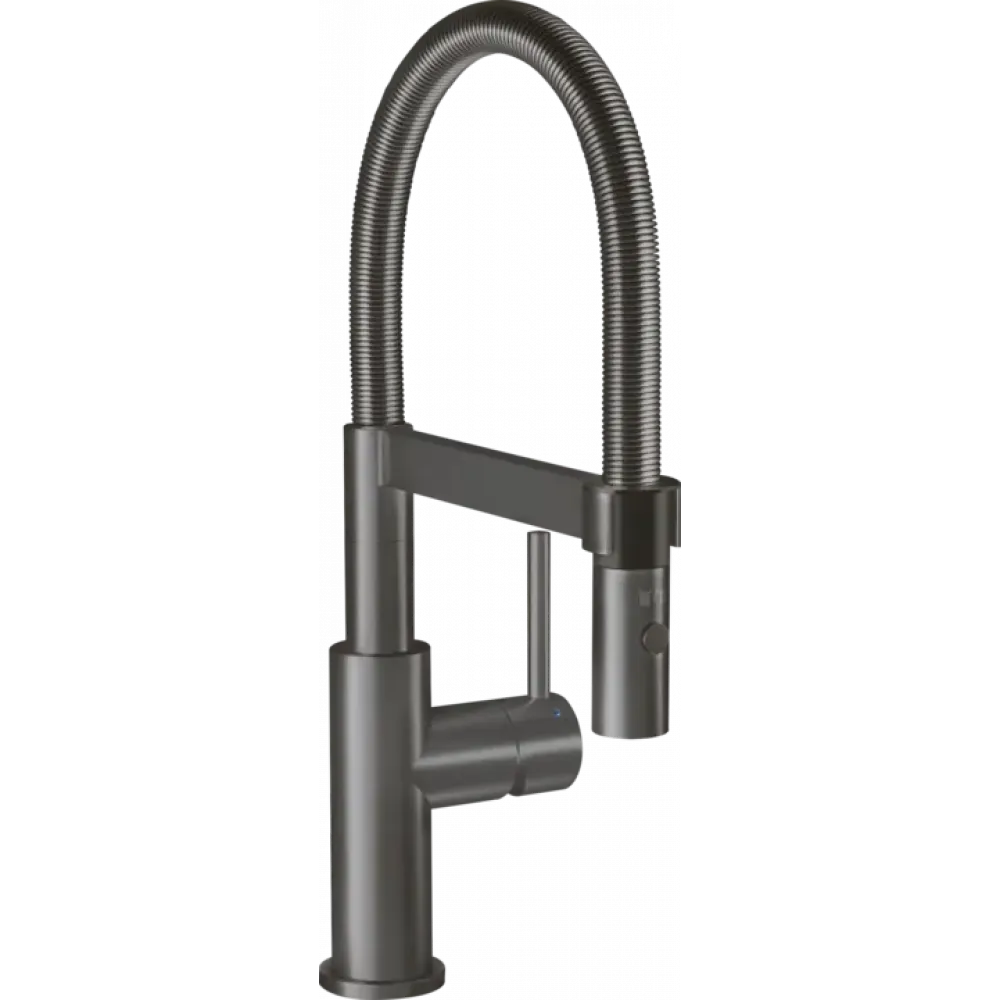 Серия Steel Expert становится еще многограннее, удобнее и индивидуальнее: Steel Expert Compact имеет высоту всего 400 мм и подойдет для небольших кухонь, даже под навесные шкафы. Кроме того, у него угол поворота 360°, им удобно пользоваться. Благодаря регулируемому душу помимо режима душа имеется режим ламинарной струи, позволяющий мыть овощи и фрукты без брызг. Магнитный держатель для фиксации душа облегчает работу.