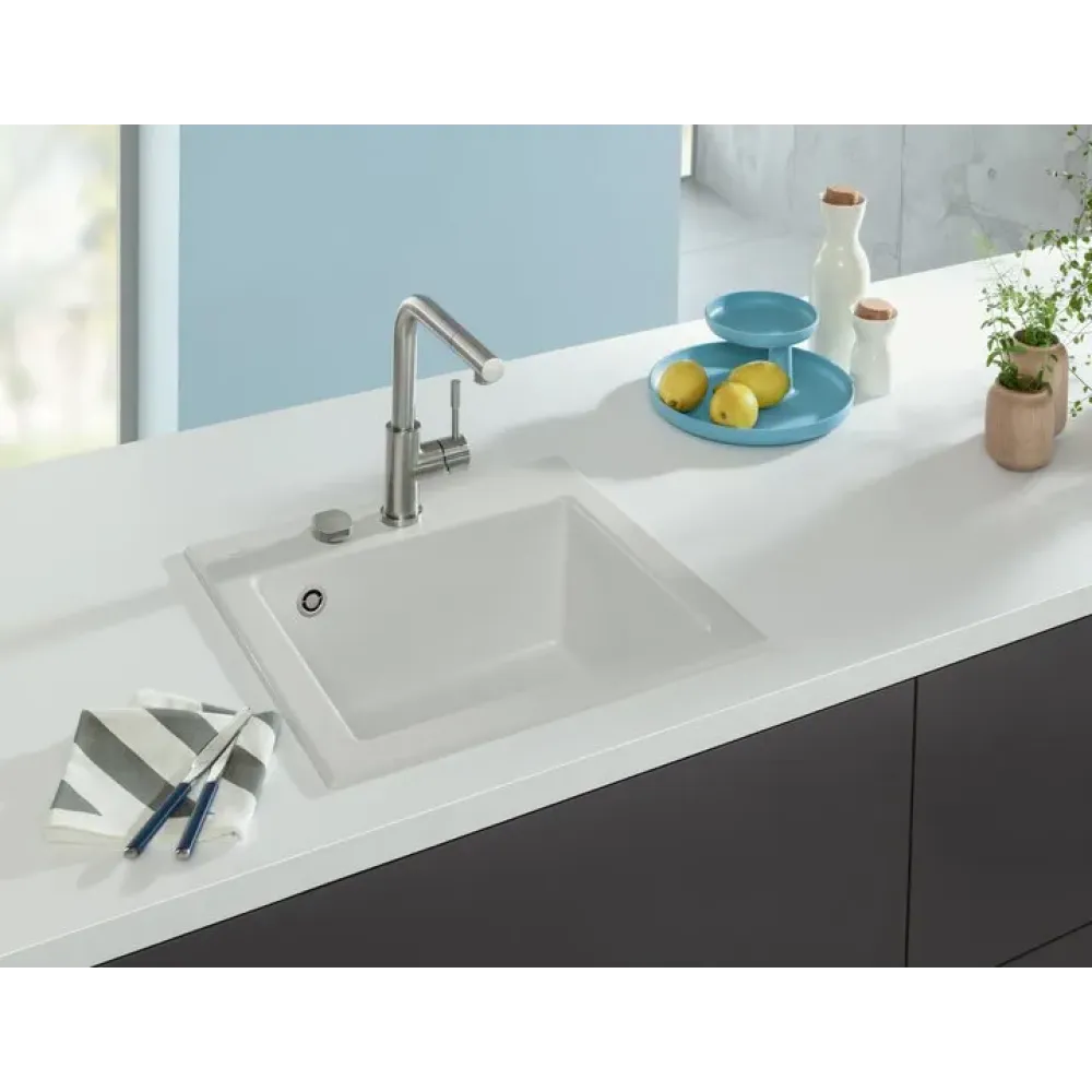 - Практичный и функциональный дизайн, гармонично сочетается с мойкой и аксессуарами, например с дозаторами для жидкого мыла