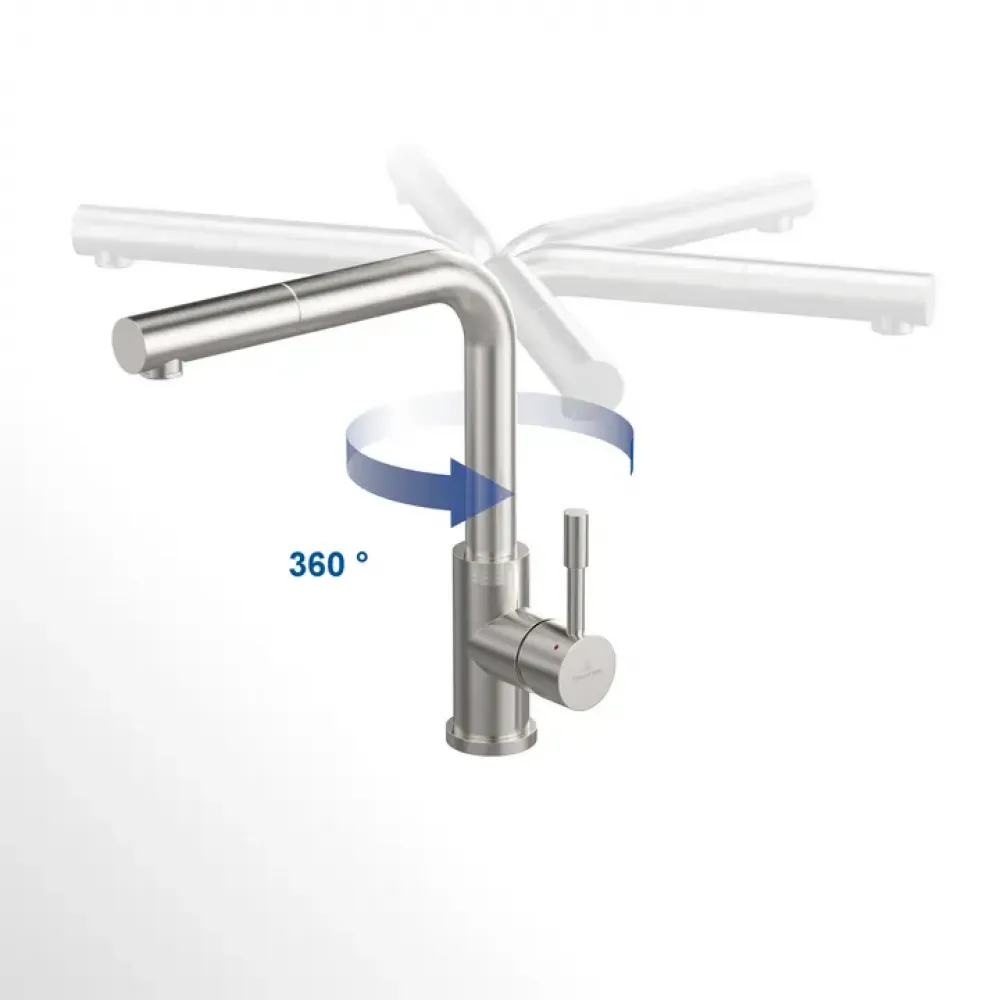 Для Villeroy & Boch универсальность кухонного оснащения имеет огромное значение. Поэтому данный смеситель имеет угол поворота 360°, который обеспечивает широкий радиус действия.