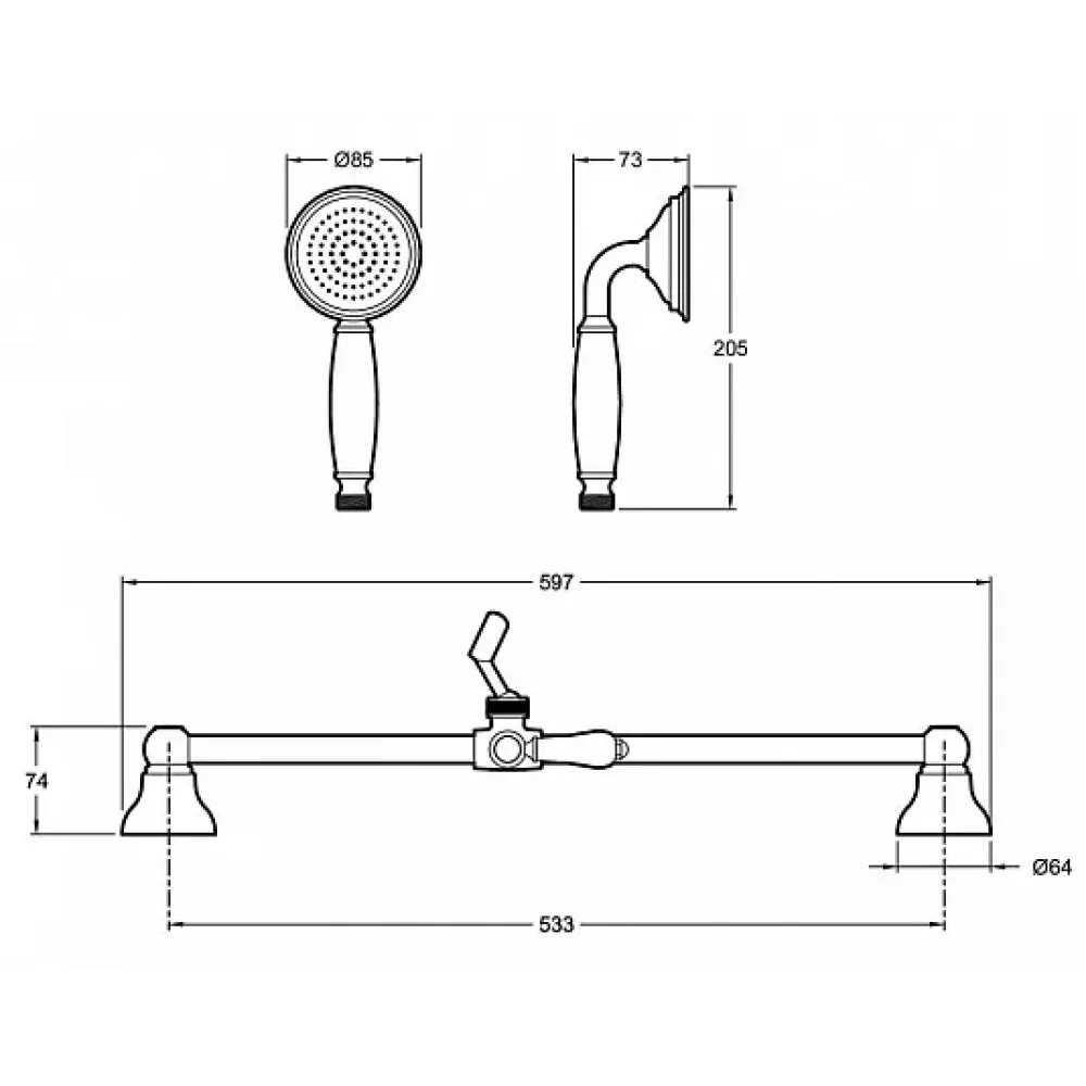 Ручной душ со штангой и шлангом