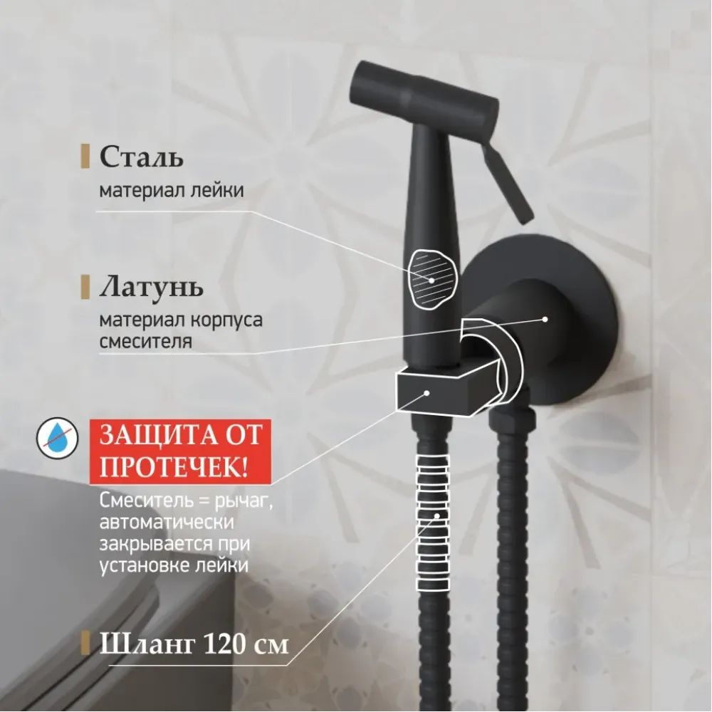 Невозможно забыть закрыть воду! Установив лейку на держатель, который является одновременно и рычагом смесителя, вы автоматически выключаете напор. Гигиенический душ прослужит долго, безопасность на высоте.