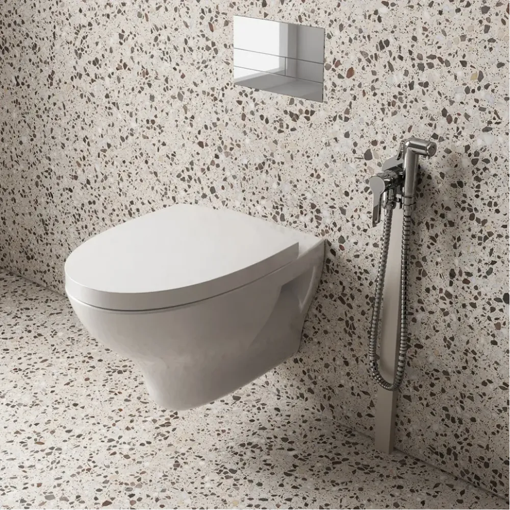 Смеситель с гигиеническим душем, который не нужно встраивать, он полностью внешний. Крепится снаружи на плитку (подводка с внешней стороны), обеспечивает комфорт и уют в вашей ванной комнате. Скачать паспорт изделия