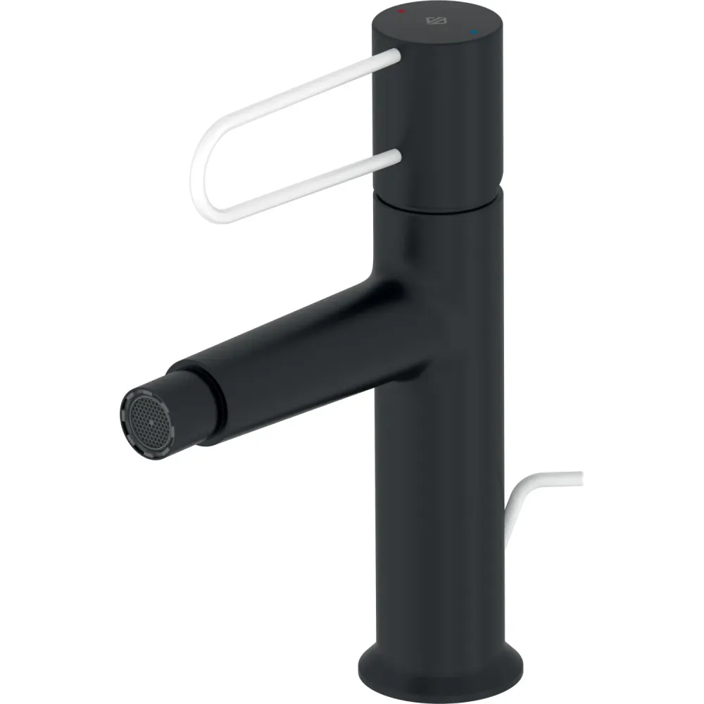 Odeon Rive Gauche, смеситель для биде, чёрный цвет, с донным клапаном, белая ручка, арт. E21033-00-BL, Jacob Delafon
