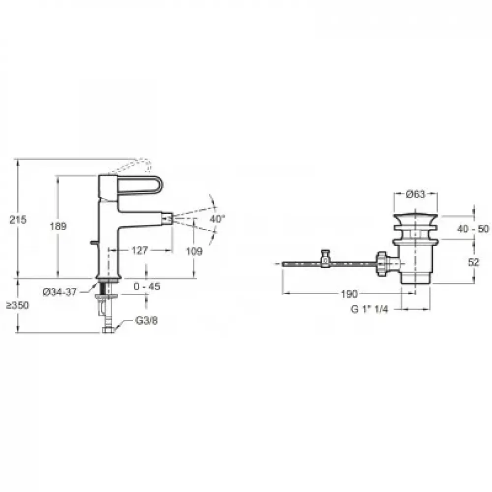 Технические характеристики Смеситель для биде Odeon Rive Gauche ручка белая, с донным клапаном E21033-00-CP Jacob Delafon