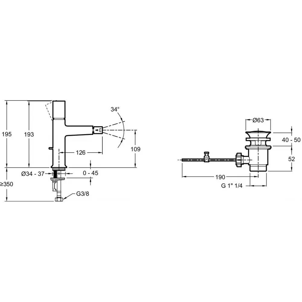 Технические характеристики Смеситель для биде Rivoli с донным клапаном E24167-CP Jacob Delafon