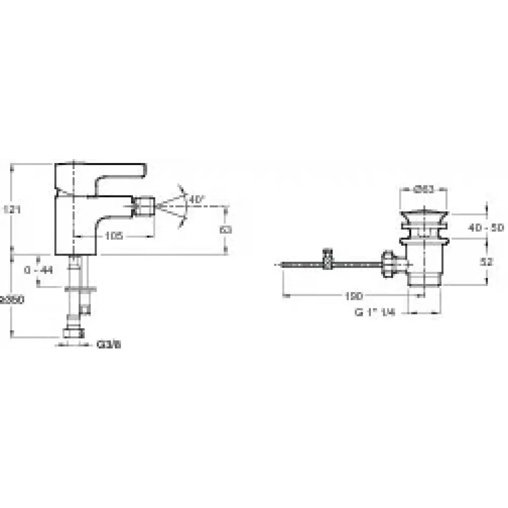 Технические характеристики Смеситель для биде Viteo с донным клапаном E14295-CP Jacob Delafon
