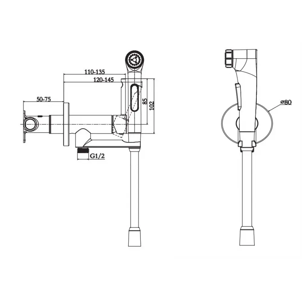 Технические характеристики Встраиваемый гигиенический душ Elate 2 режима, одноэлементный, пластик E28317-CP Jacob Delafon