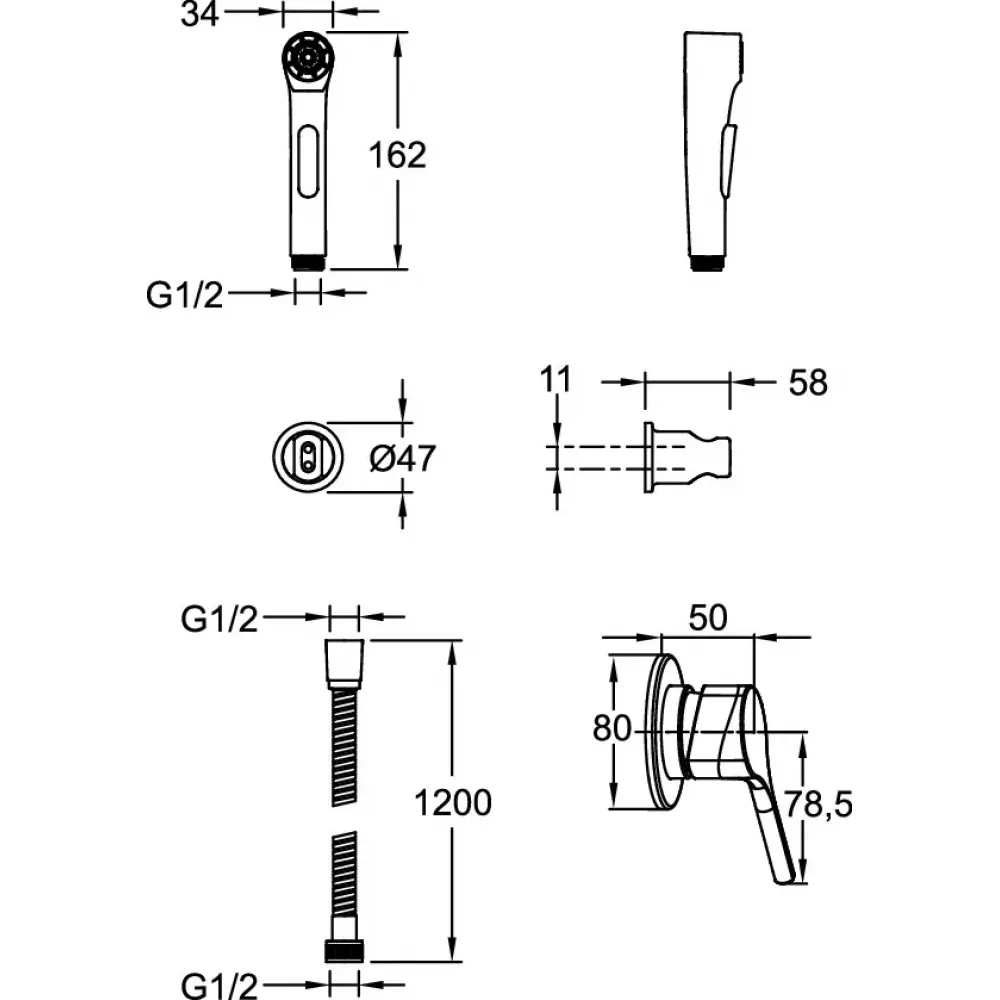 Технические характеристики Встраиваемый гигиенический душ Elate трехэлементный, пластик E24610-CP Jacob Delafon