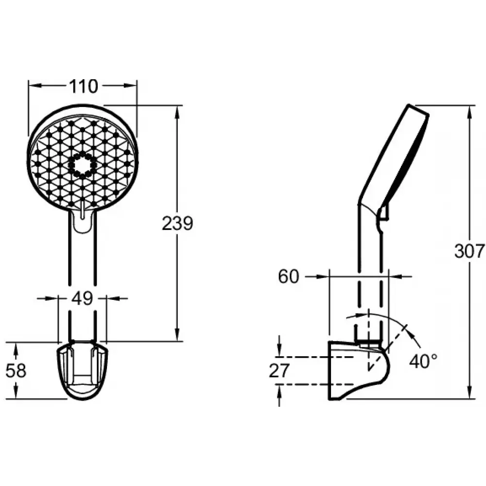 Awaken, душевая лейка, 3 режима, шланг в комплекте, с держателем, арт. E76758-CP, Jacob Delafon
