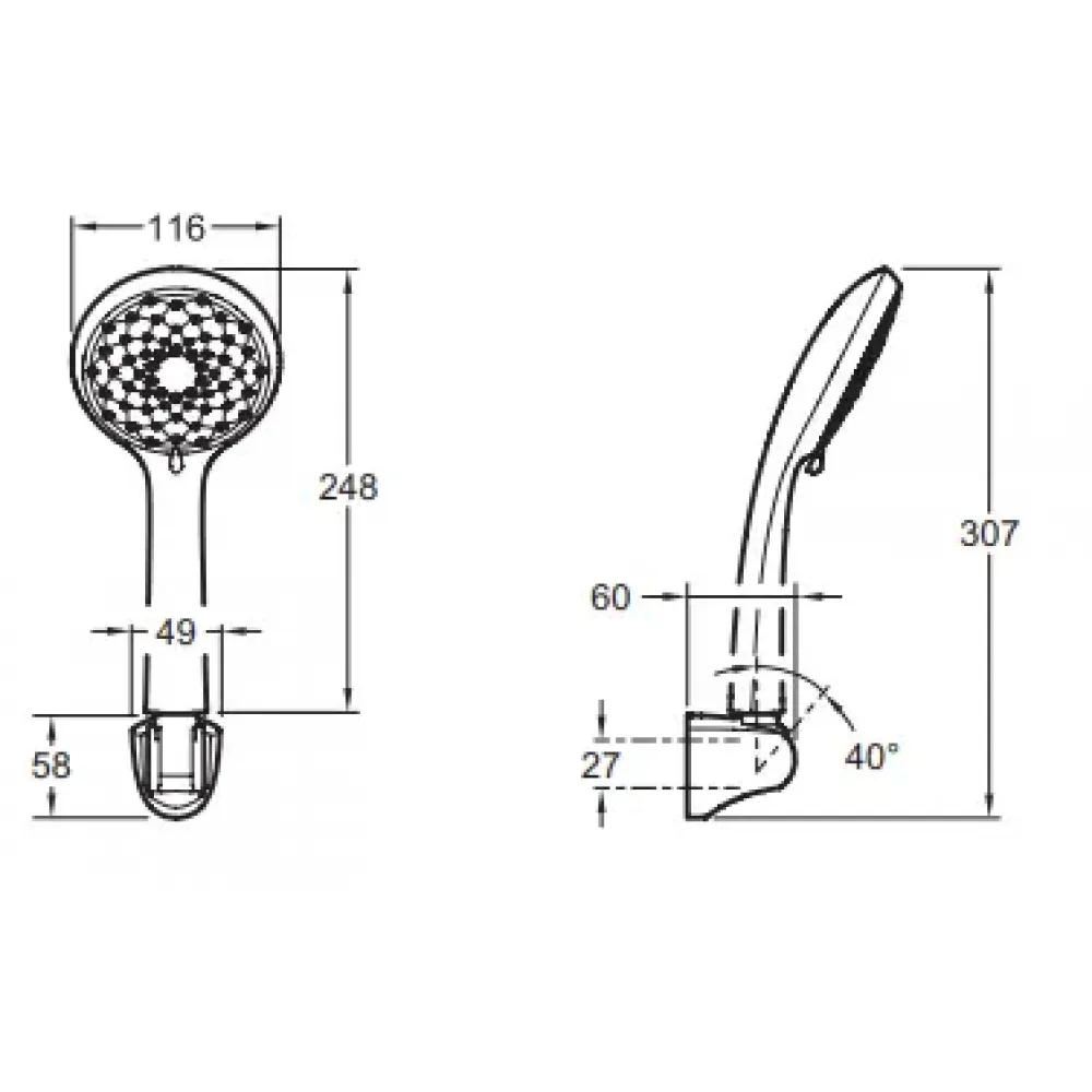Технические характеристики Душевая лейка Awaken с настенным держателем, 3 режима, шланг в комплекте E76759-CP Jacob Delafon