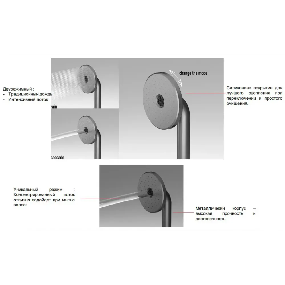 Ручной душ, 2 режима, цвет душевой лейки серый, черный матовый