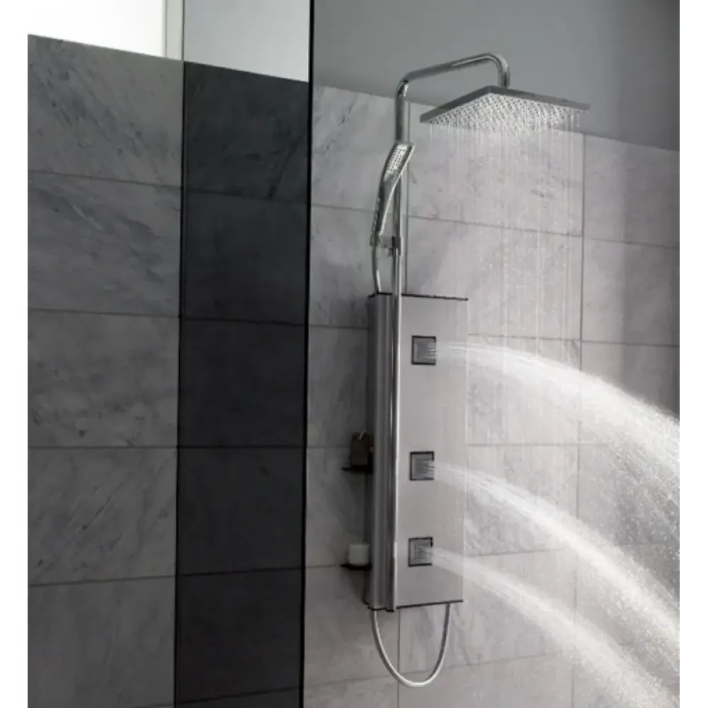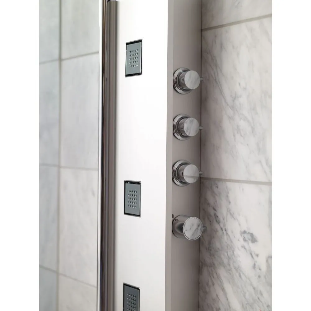 Минималистский дизайн, в котором выполнены душевые панели, помогает достичь нового уровня комфорта. На сегодняшний день WaterTile Tower являются самыми тонкими душевыми панелями, представленными на рынке (всего 10 см), и при этом имеют регуляторы температуры и запорные краны для каждой функции. При установке легко подсоединяется к обычной водопроводной арматуре. Мощный верхний душ, вращающиеся гидромассажные форсунки, противоскользящее покрытие, оригинальные дополнительные элементы (боковая полка и чистящий скребок) – все это делает из WaterTile Tower полноценную систему, которая подарит Вам незабываемое наслаждение.