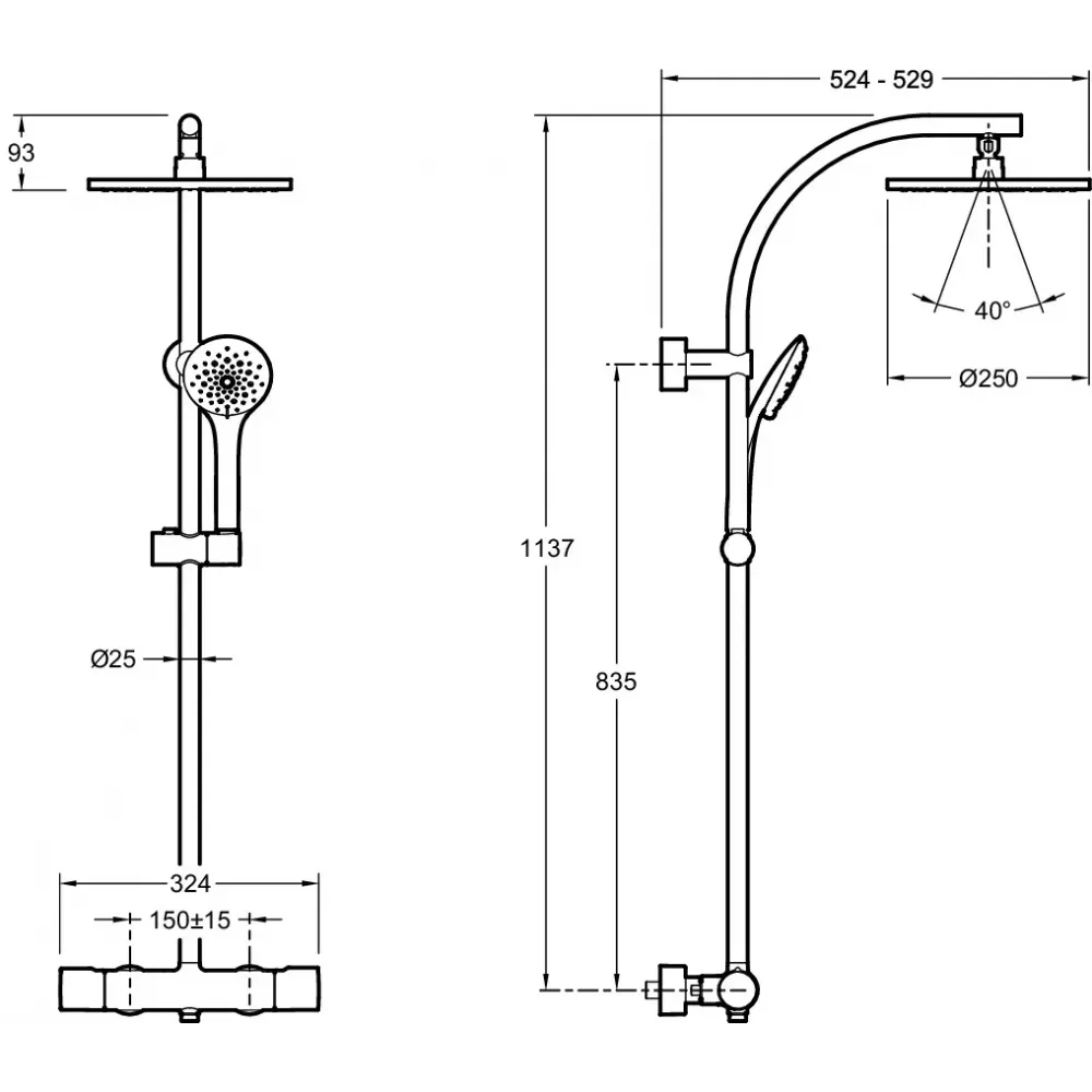 Технические характеристики Душевая система без излива Amelie 3 режима, 25 см, round, термостат, верхний душ, с лейкой E32851-CP Jacob Delafon