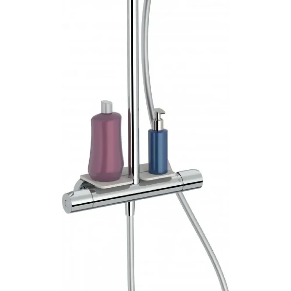 Душевая система без излива Metro с полкой, 3 режима, 30 см, round, термостат, верхний душ, с лейкой E26589-CP Jacob Delafon