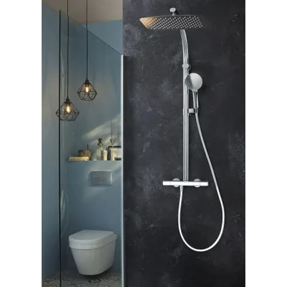 Душевая колонна с термостатическим смесителем, верхним и ручным душем.