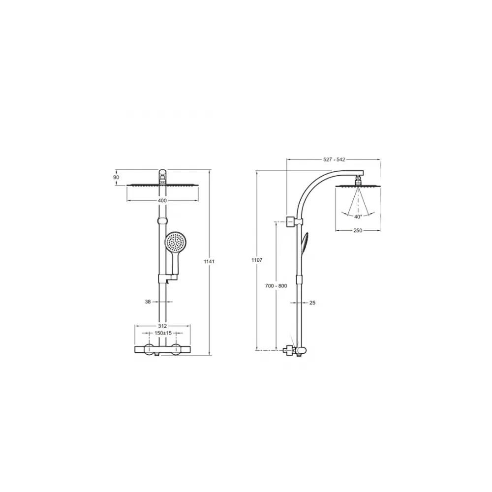 | Размер лейки верхнего душа, см | 40 |