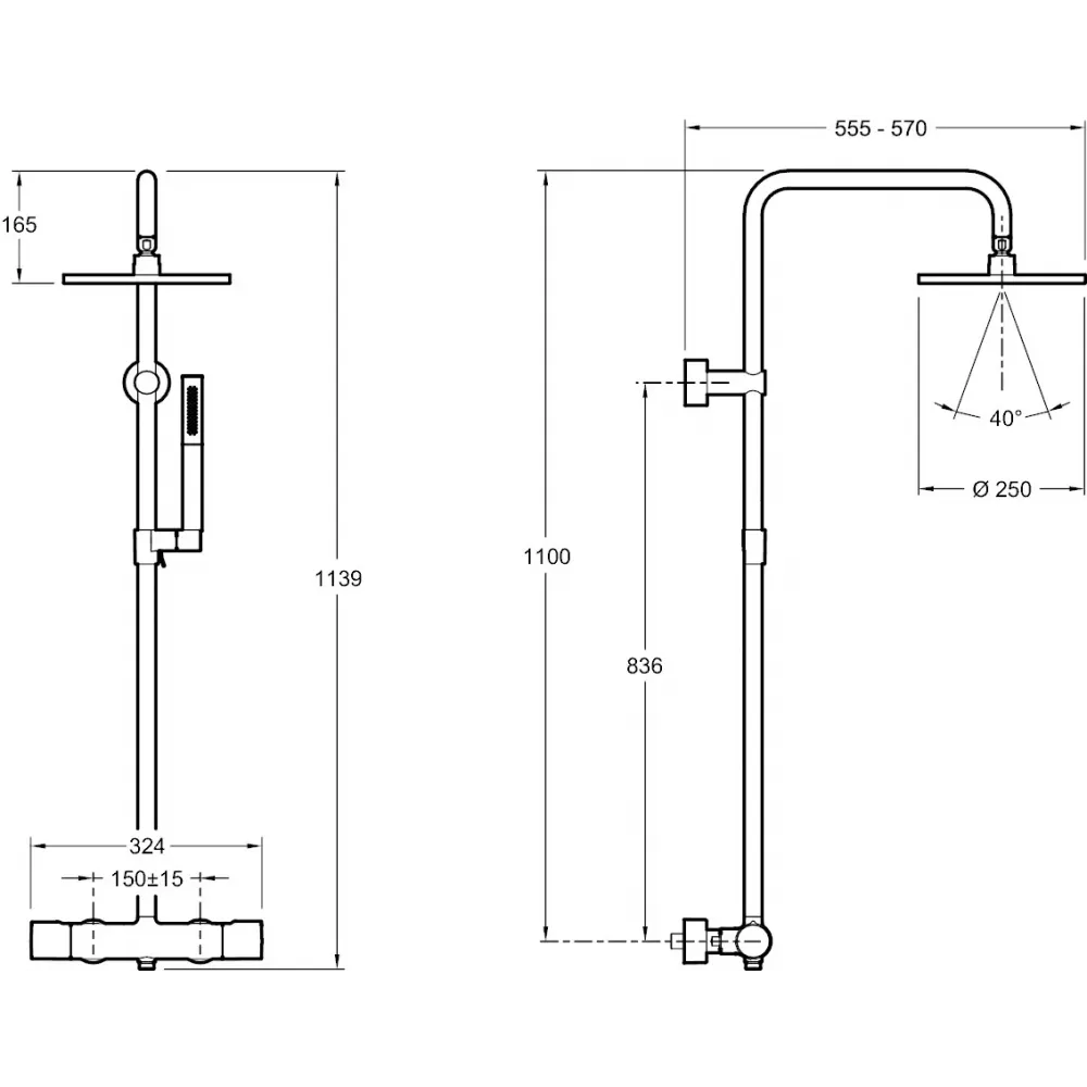 Круглый верхний душ: 250 мм (расход воды: 10 л/мин).
