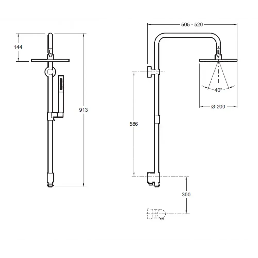 Технические характеристики Гарнитур с верхним душем Eo E11715-CP 3 режима, 20 см, round E11715-CP Jacob Delafon