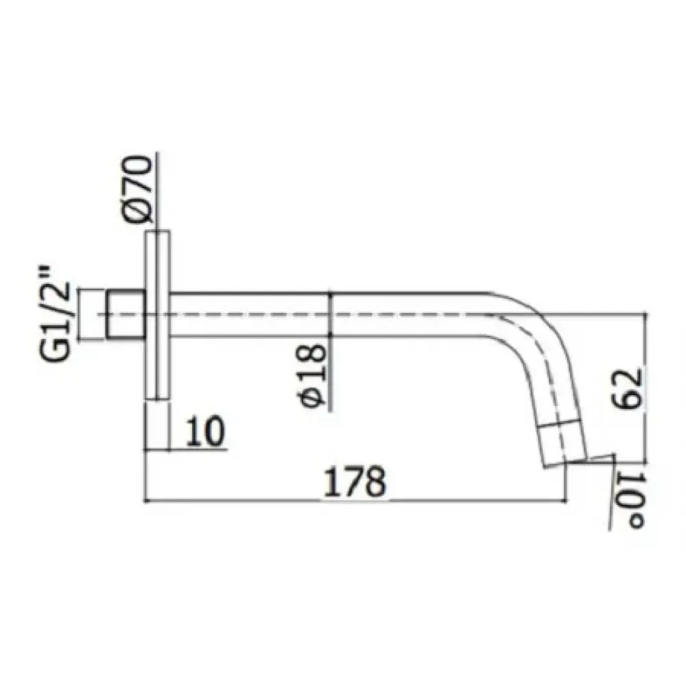 Излив из стены Paffoni Light ZBOC045NO d.18, длина 175мм подкл. 1/2" с латунной накладкой d.70, черный матовый