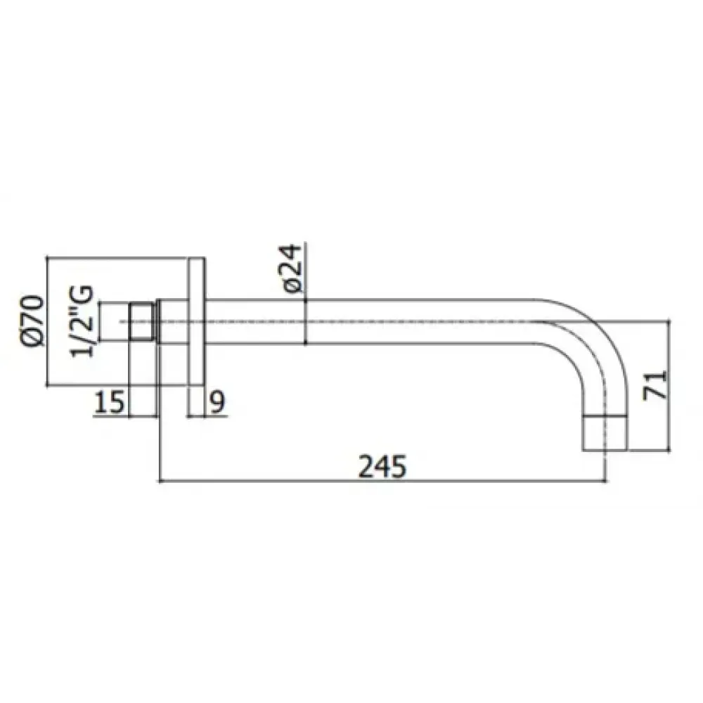 Излив из стены Paffoni Light ZBOC141NO d.24, длина 245мм подкл. 1/2" с латунной накладкой d.70, черный матовый