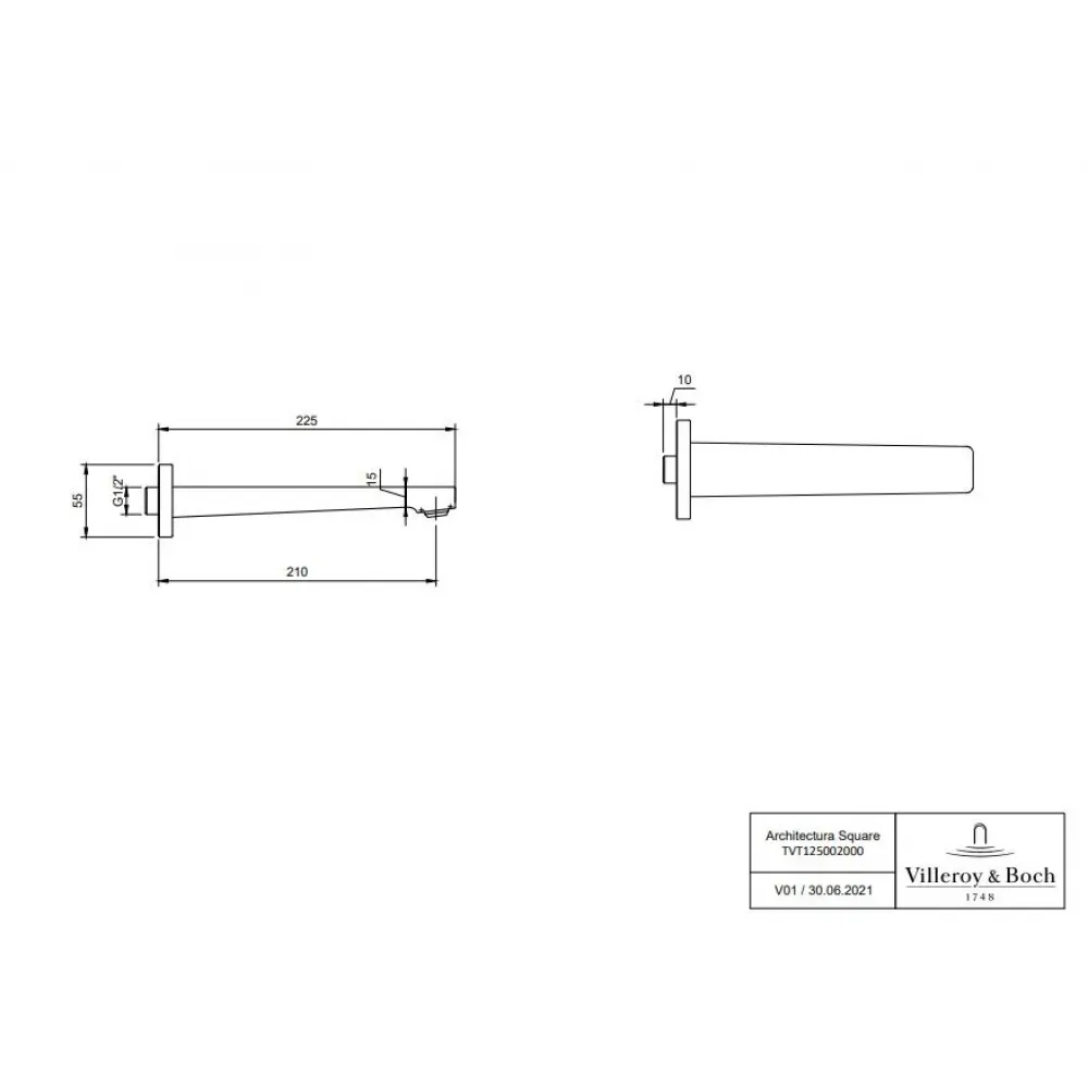 Излив Villeroy & Boch Architectura Square TVT125002000K5 для ванны, черный матовый