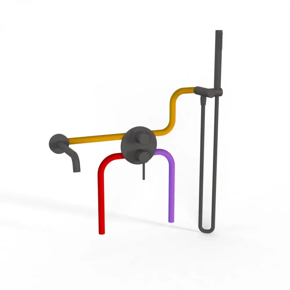 Комплект на 2 потребителя Cox PAINI, для ванны с ручным душем, черный брашированный PVD
