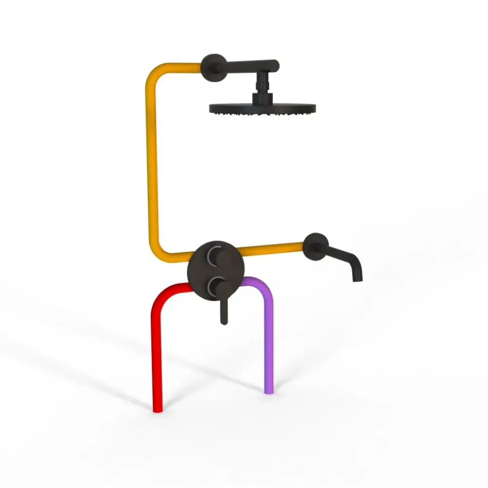 Комплект на 2 потребителя Cox PAINI, для ванны с верхним душем, черный брашированный PVD