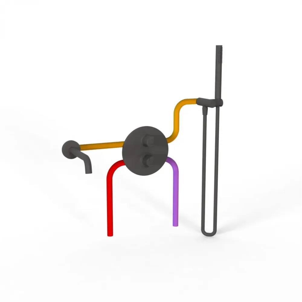 Комплект на 2 потребителя с термостатом Cox PAINI, для ванны с ручным душем, черный брашированный PVD