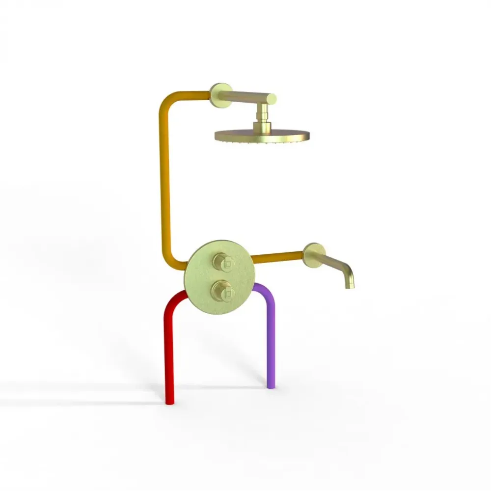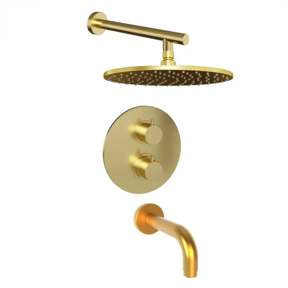 Комплект на 2 потребителя с термостатом Cox PAINI, для ванны с верхним душем, брашированное золото PVD