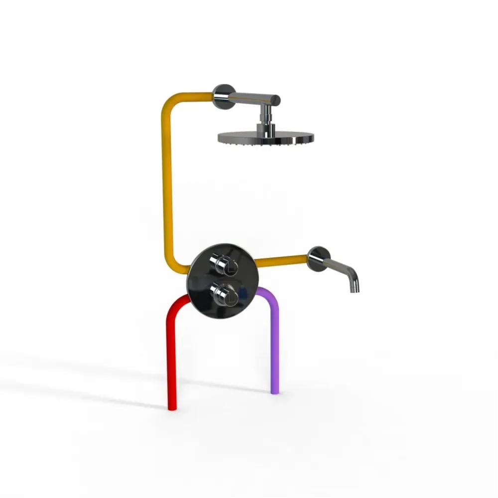 Комплект на 2 потребителя с термостатом Cox PAINI, для ванны с верхним душем, хром