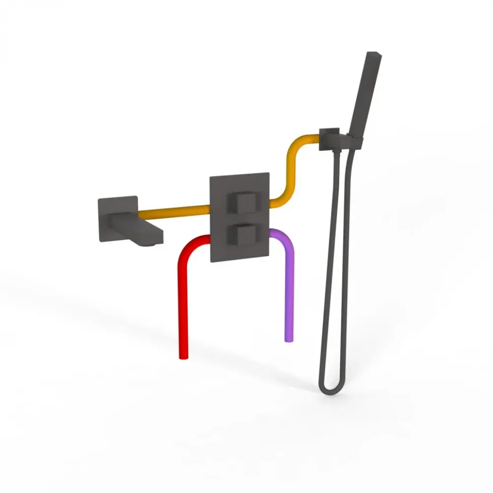 Комплект на 2 потребителя с термостатом Grazia PAINI, для ванны с ручным душем, черный брашированный PVD