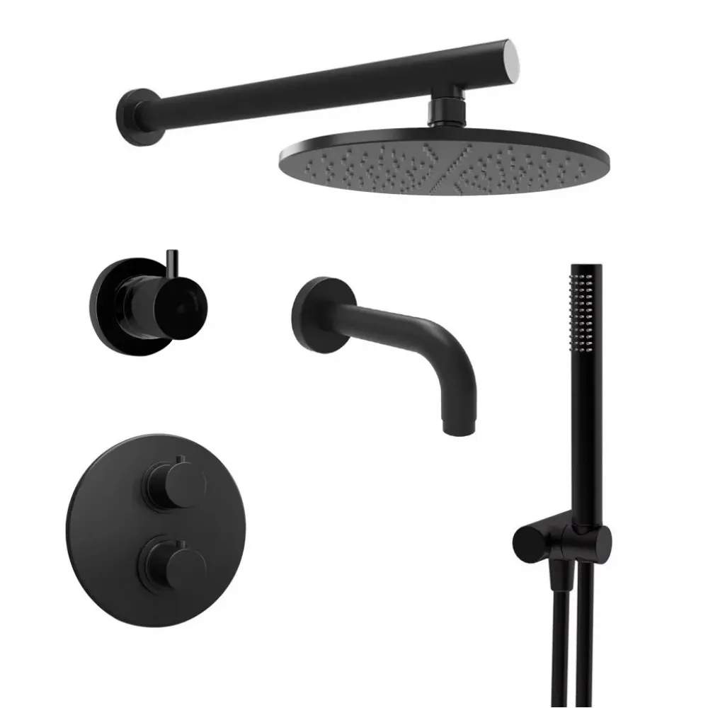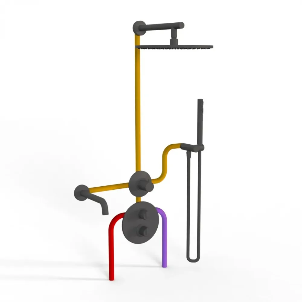 Комплект на 3 потребителя с термостатом Cox PAINI, для ванны/душа, черный брашированный PVD
