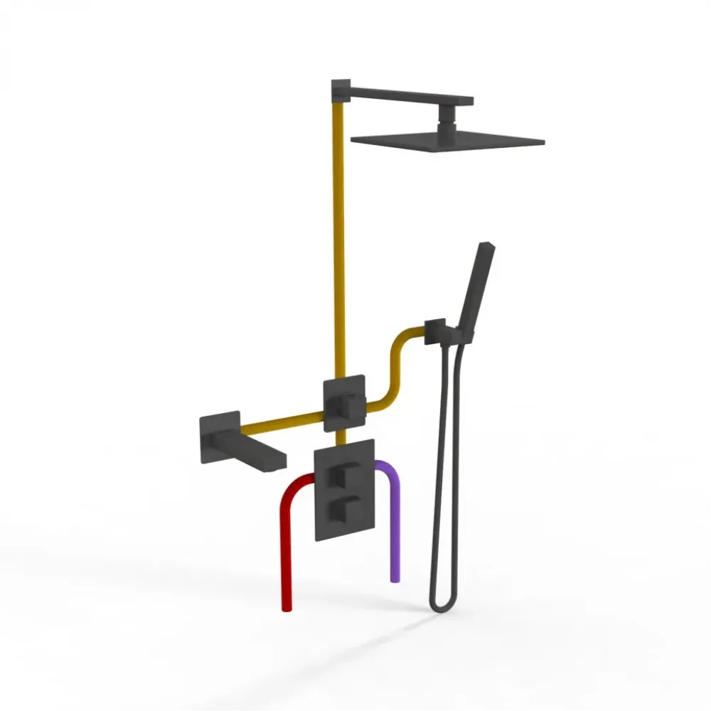 Комплект на 3 потребителя с термостатом Grazia PAINI, для ванны/душа, черный брашированный PVD